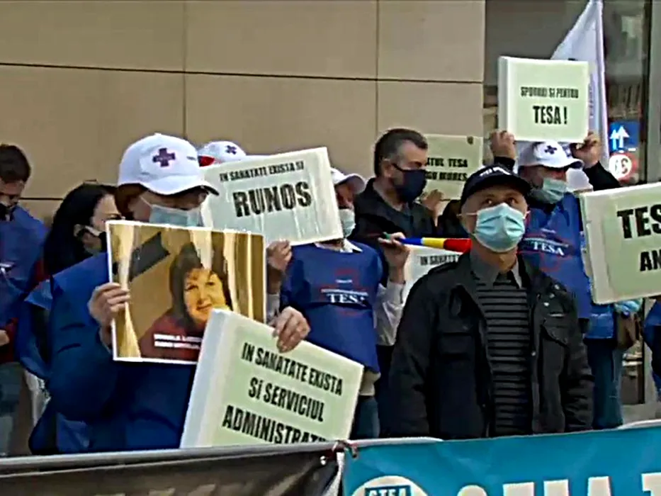 GALERIE FOTO: Protest la Ministerul Sănătății: Personalul din spitale a ieșit în stradă să își strige nemulțumirile: „Așa nu se mai poate!” – FOTO