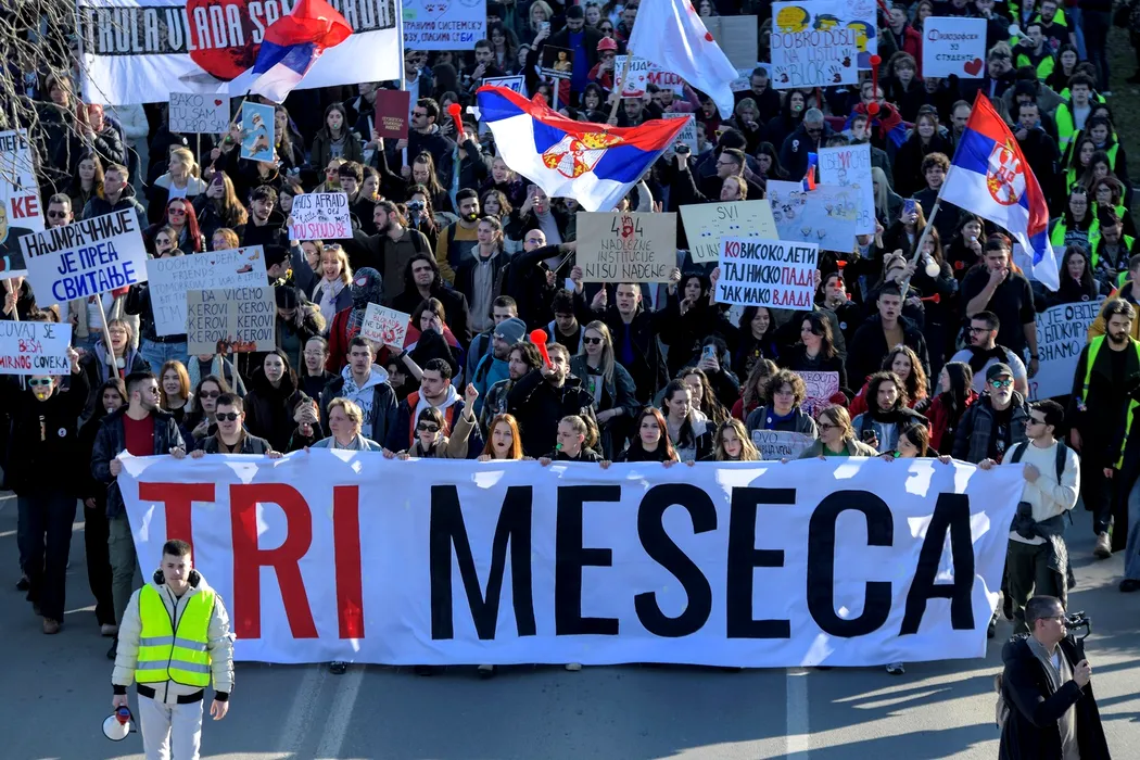 GALERIE FOTO: Protest masiv al studenților din Novi Sad, la 3 luni de la TRAGEDIA din gară, soldată cu 15 morți. Manifestanții au blocat podurile de peste Dunăre