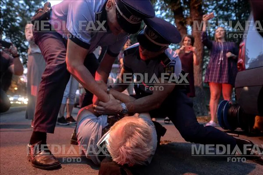 Protestatarul „Ceaușescu”, încătușat în fața sediului PSD / Amenda primită – FOTO / VIDEO