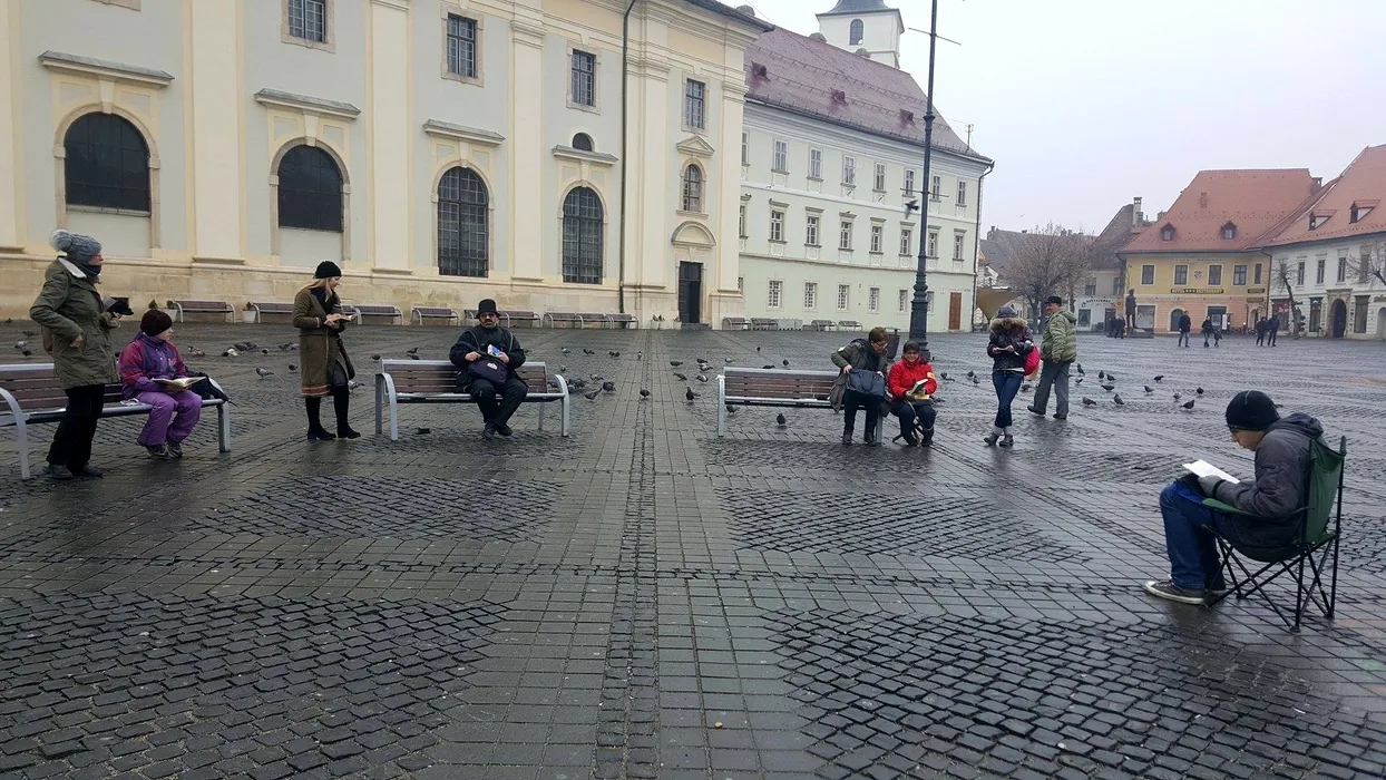 Proteste antiguvernamentale cu cărți și copii în centrul Sibiului