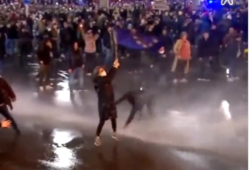 Gaze şi tunuri cu apă împotriva miilor de opozanţi ai unei legi represive / Sursa foto: captură video Twitter