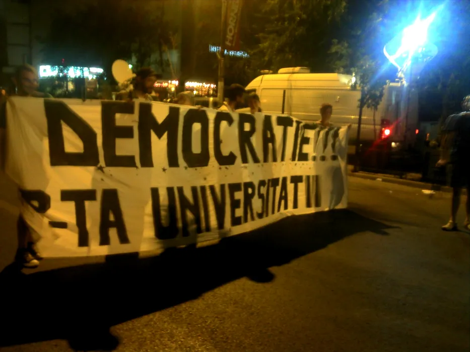 PROTESTE LA UNIVERSITATE. Câteva sute de manifestanți anti-Băsescu au ieșit în piață, după decizia Curții Constituționale