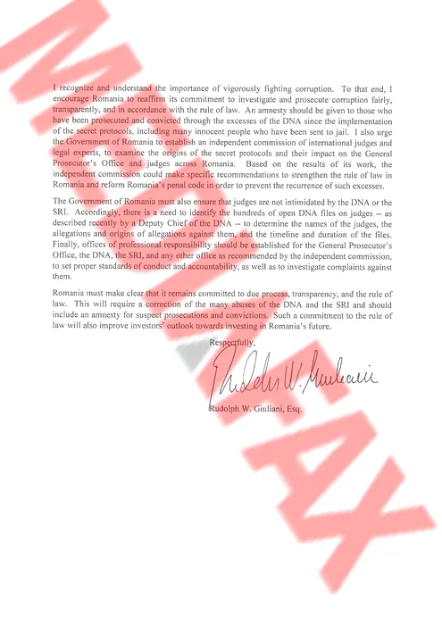 Protocoalele promovate de Kovesi si Maior SUBMINEAZĂ statul de drept. RUDOLPH GIULIANI, scrisoare către oficialii statului român