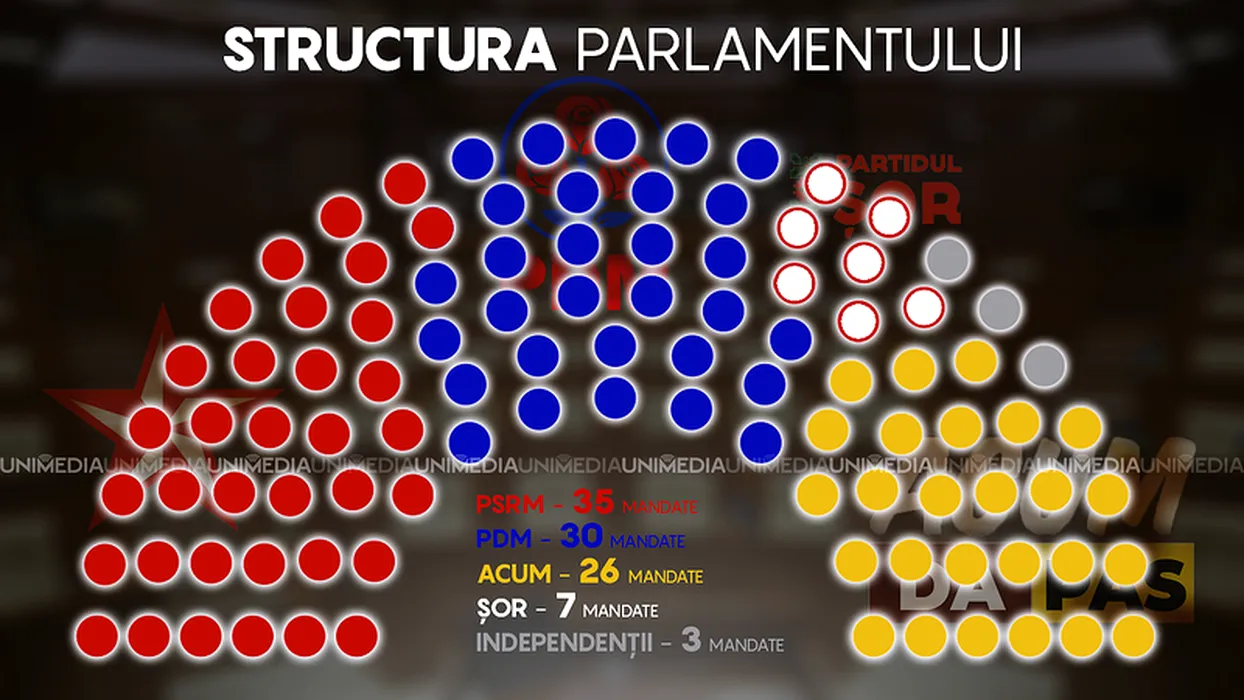 PSRM, cel mai mare număr de MANDATE în Parlamentul moldovean, dar NU deține majoritatea