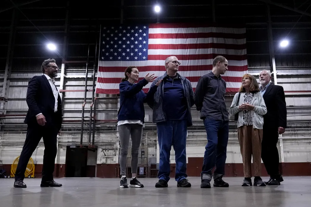 Alsu Kurmasheva, second from left, stands with Paul Whelan, center, and Evan Gershkovich, third from right, at Kelly Field after being released by Russia, Friday, Aug. 2, 2024, in San Antonio.,Image: 895210644, License: Rights-managed, Restrictions: This content is intended for editorial use only. For other uses, additional clearances may be required., Model Release: no, Pictured: Evan Gershkovich,Paul Whelan