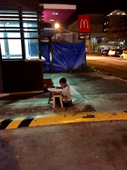 Puterea social media. Ce s-a întâmplat cu băiețelul din Filipine care își face temele pe stradă, după ce fotografia cu el a devenit virală