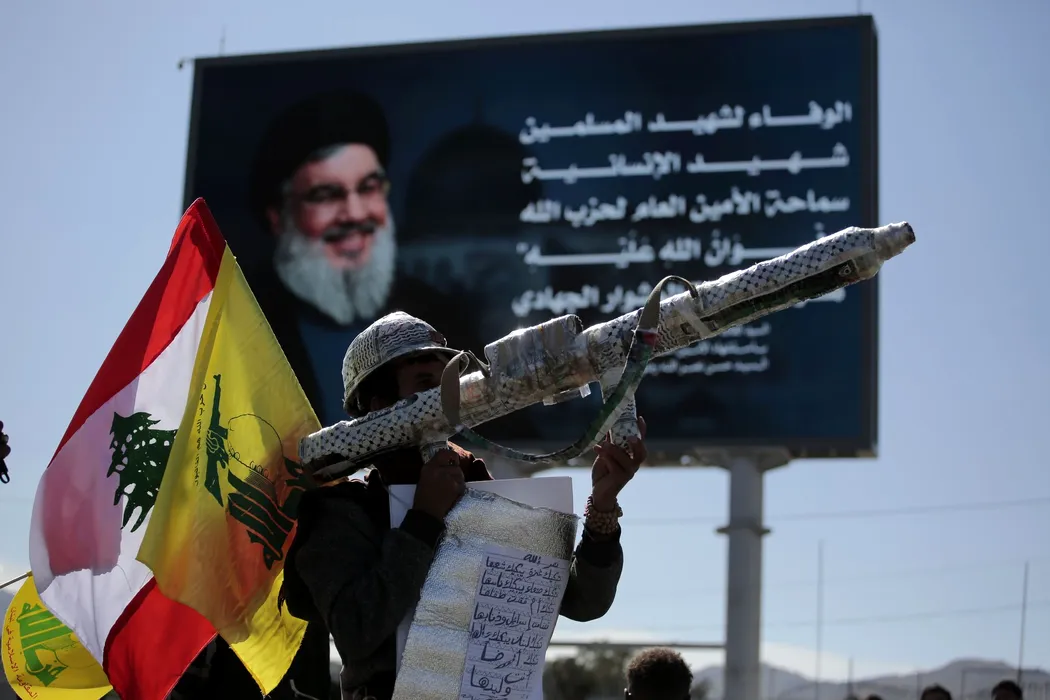 Susținătorii Huthi în timpul unui protest împotriva Israelului, în Sanaa, Yemen.