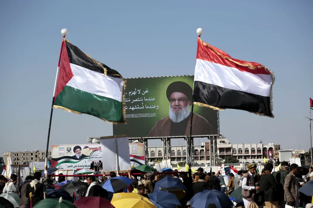 Susținătorii Huthi în timpul unui protest împotriva Israelului, în Sanaa, Yemen.