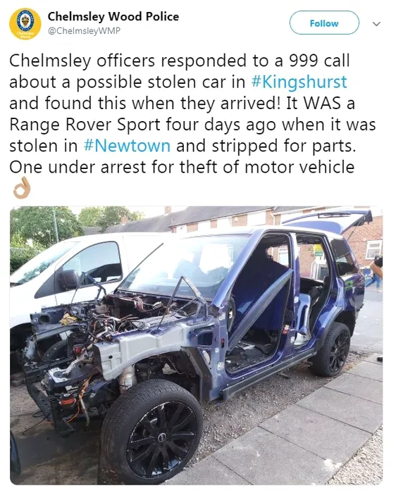Range Rover de peste 80.000 de euro, „chelit” de hoți. Surpriza polițiștilor când au găsit SUV-ul de lux