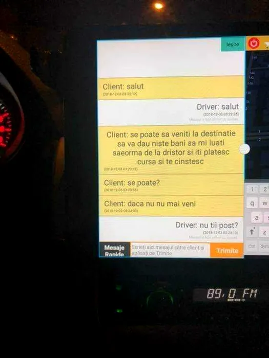 GALERIE FOTO: Răspunsul neașteptat al unui taximetrist după ce un client i-a cerut prin aplicație să îi cumpere o shaorma – FOTO