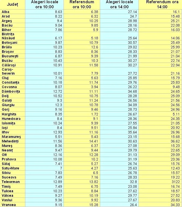 REFERENDUM 2012. Ultimele rezultate BEC. Prezența la vot până la ora 23:00 este de 45,92%. Vezi situația pe județe