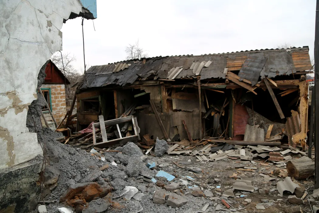 8125700 24.02.2022 The view shows a house and a barn destroyed as a result of a recent shelling in Horlivka, Donetsk People's Republic. On February 24 Russian President Vladimir Putin announced a military operation in Ukraine following recognition of independence of breakaway Donbas republics. Sergey Averin / Sputnik