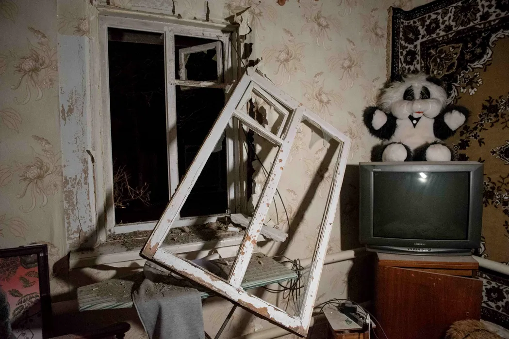 February 18, 2022, Stanytsia Luhanska, Ukraine: Militants in Donbas resumed shelling of Stanytsia Luhanska. As a result, one of the shells hit a residential building. Anton Herashchenko also confirmed the indecent on his Telegram channel. Herashchenko is a current official advisor and a former deputy minister at the Ukrainian Ministry of Internal Affairs. Also, Joint Forces Operation Commander Oleksandr Pavliuk clarified that two houses and a gas pipeline were damaged. (Credit Image: © Jakub Podkowiak/PRESSCOV via ZUMA Press Wire)