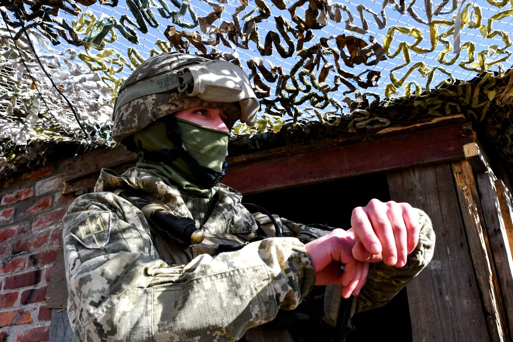 February 20, 2022, Verkhnotoretske, Donetsk, Ukraine: A Ukrainian serviceman is seen on the frontline in the Verkhnotoretske village that is situated on the very frontline in eastern Ukraine..In the ongoing Russia Ukraine crisis, the United States still stands at saying that Moscow could attack Kyiv at any instance. Meanwhile, Ukraine has said that it has recorded over 100 ceasefire violations just a day after heavy weapons fire and President Volodymyr Zelensky reaffirmed his trust on country's intelligence. (Credit Image: © Andriy Andriyenko/SOPA Images via ZUMA Press Wire)