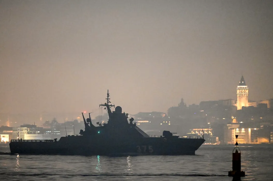 Russian Navy's Project 22160 Patrol Vessel Dmitriy Rogachev 375 sails through the Bosphorus Strait on the way to the Black Sea past the city Istanbul as Galata Tower is seen in the backround on February 16, 2022.,Image: 662916912, License: Rights-managed, Restrictions: , Model Release: no, Credit line: Profimedia
