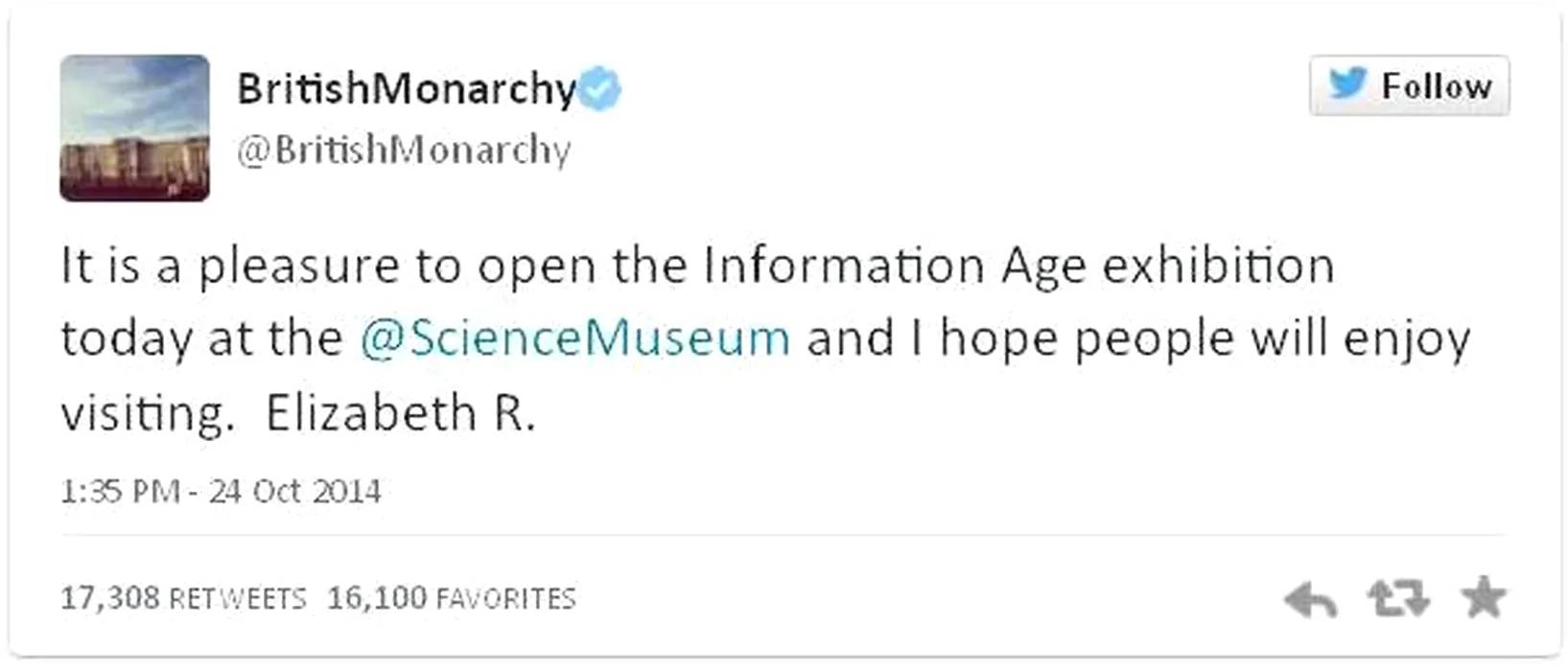 Regina Elisabeta a II-a a postat pentru prima oară pe Twitter. Mesajul ei, distribuit de mii de ori în mai puțin de o oră