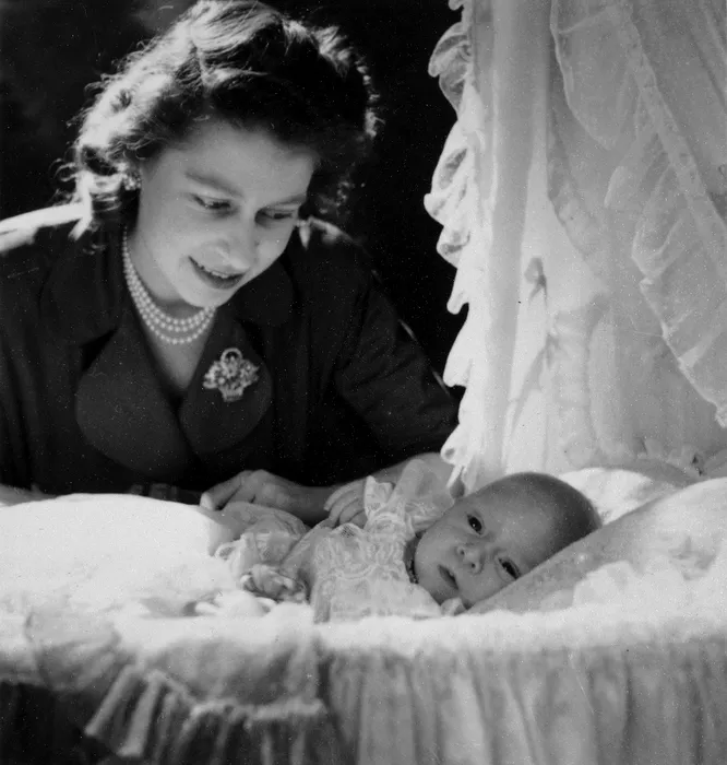 Regina Elisabeta a II-a, în 1948, când era prințesă, alături de alături de primul copil al său, Charles, / Sursă FOTO: Profimedia Images