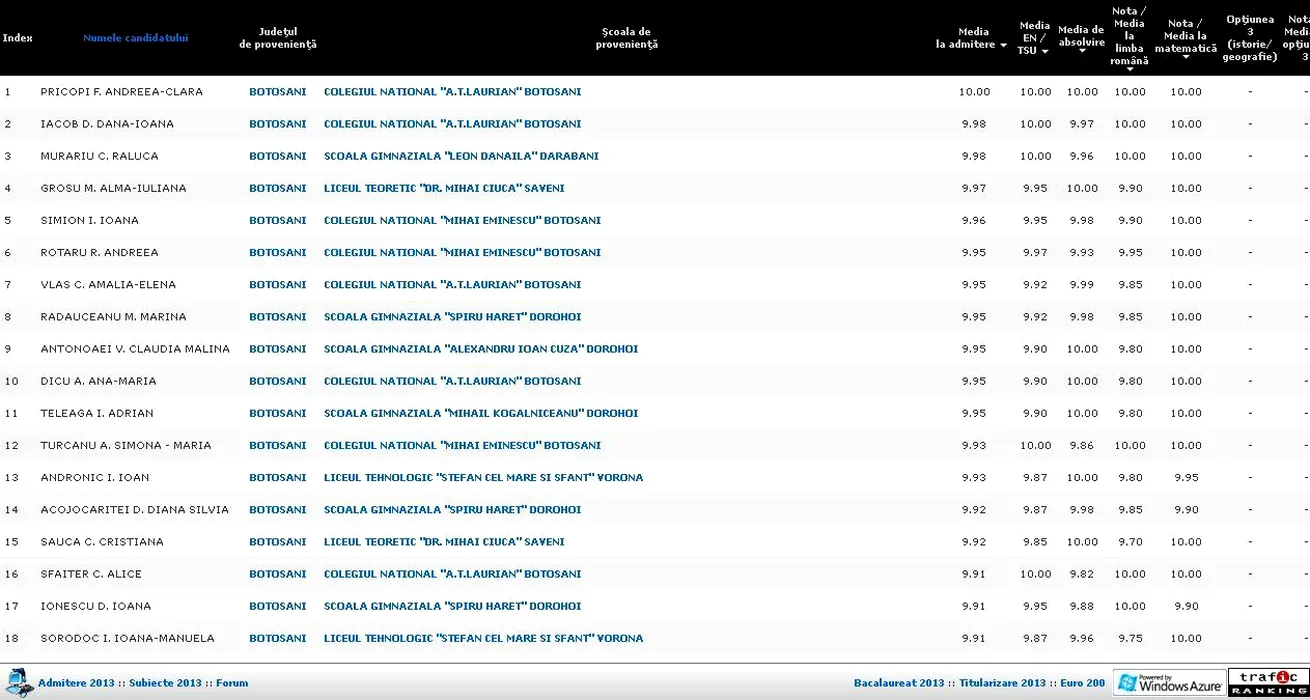 REPARTIZARE LICEE 2013 BOTOȘANI pe EDU.RO. Admitere la liceu 2013: un singur elev a intrat la liceu cu media 10
