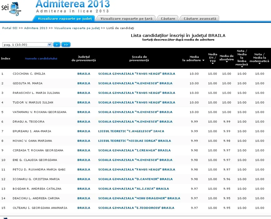 REPARTIZARE LICEE 2013 BRĂILA pe EDU.RO . Admitere la liceu 2013: cinci elevi au intrat cu media 10