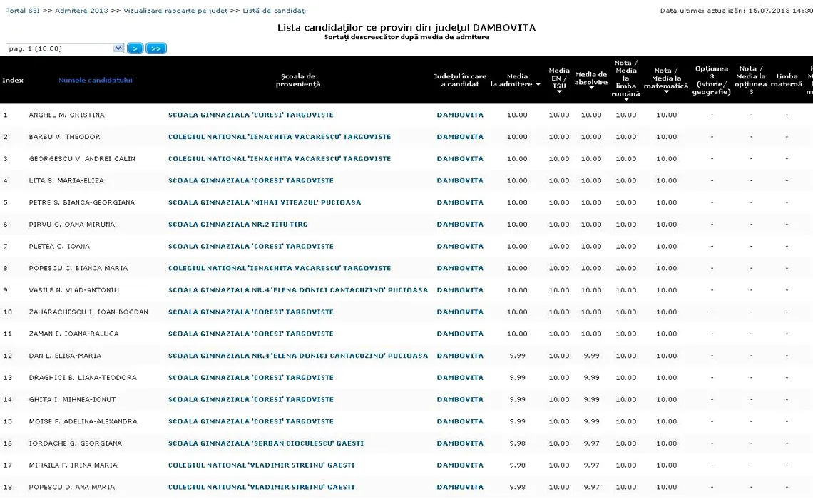 REPARTIZARE LICEE 2013 DÂMBOVIȚA pe EDU.RO. În DÂMBOVIȚA au rămas 6 candidați nerepartizați