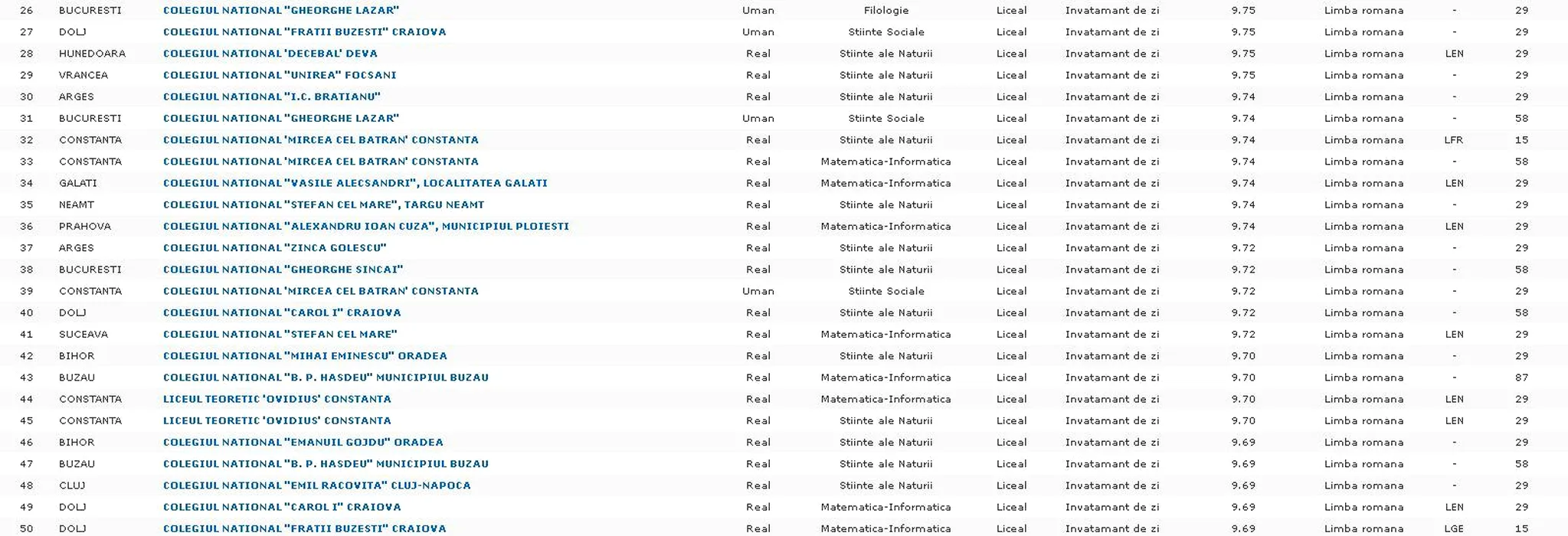 REPARTIZARE LICEE 2013 EDU.RO. Lista primelor 50 de specializări din țară. Sfântul Sava în fruntea liceelor