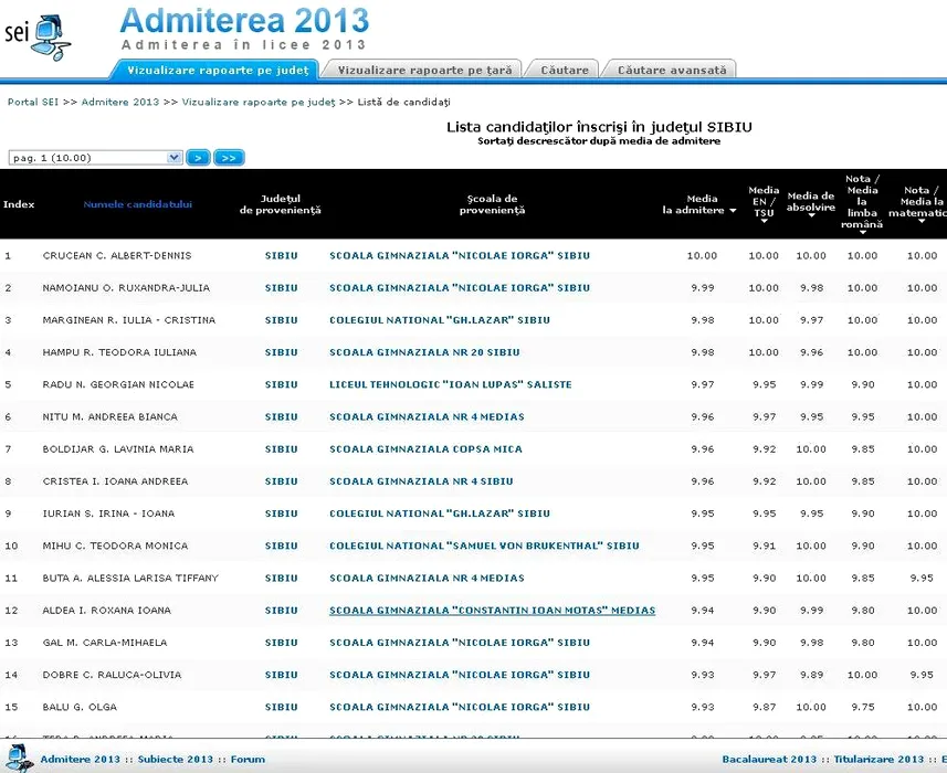 REPARTIZARE LICEE 2013 SIBIU pe EDU.RO. Admitere la liceu 2013: în Sibiu au fost 4 medii de 10