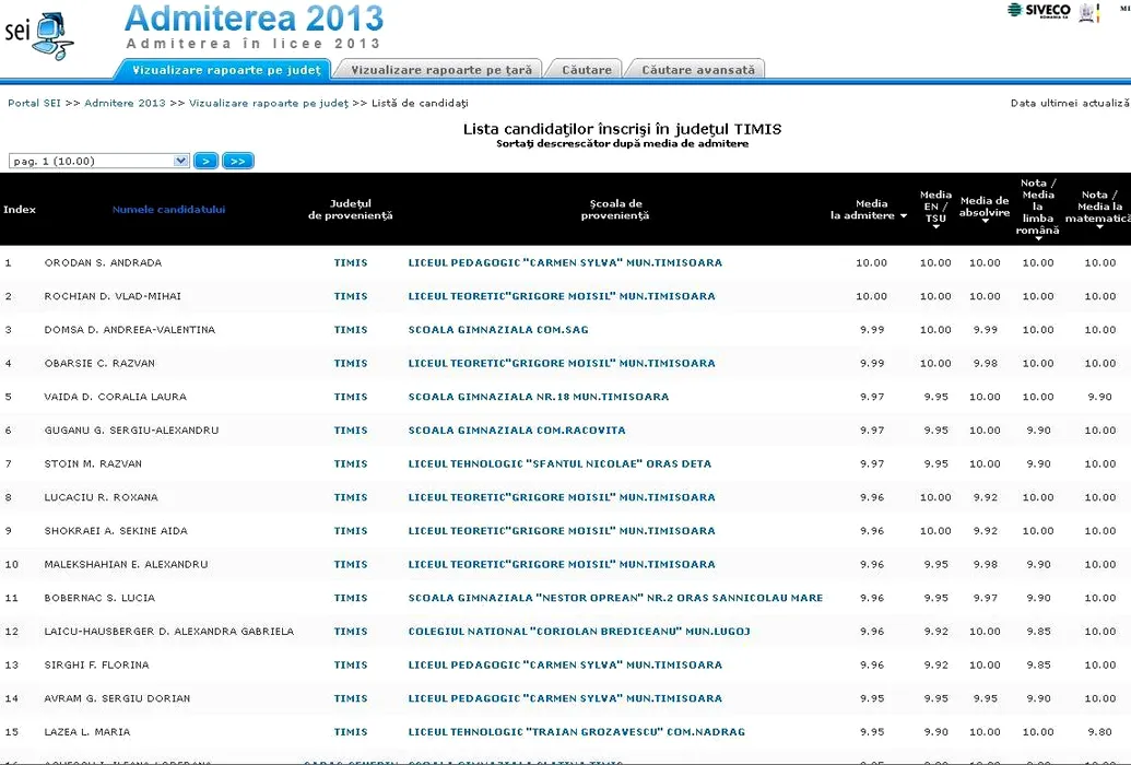 REPARTIZARE LICEE 2013 TIMIȘ pe EDU.RO. Admitere la liceu 2013: doi elevi au intrat cu media 10