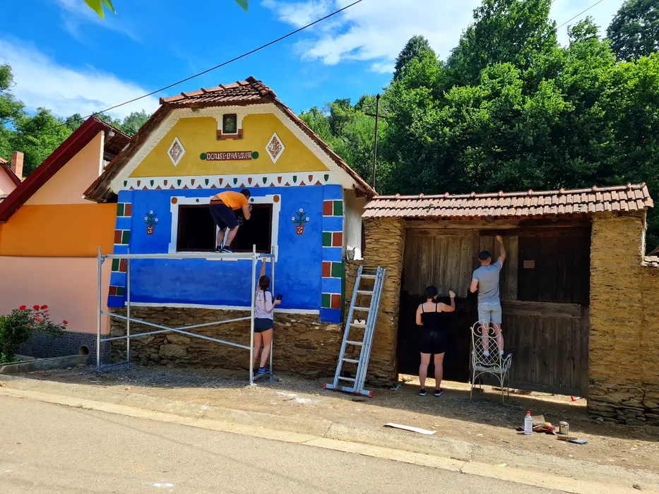 Reportaj în inima Banatului, unde casele colorate din lemn, vechi de peste 100 de ani, sunt reparate și zugrăvite de voluntari. Cum a ajuns „Color de village” la Fărășești | FOTO