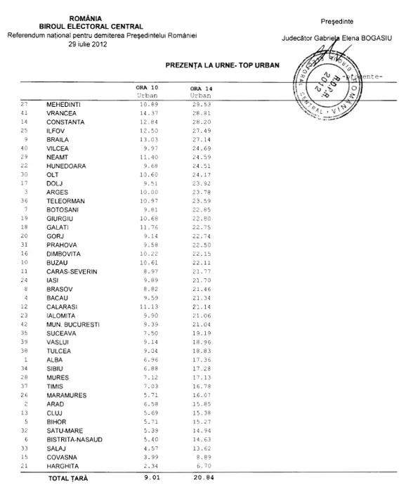 REZULTAT REFERENDUM 2012 – DEMITERE BĂSESCU. HARTA INTERACTIVĂ