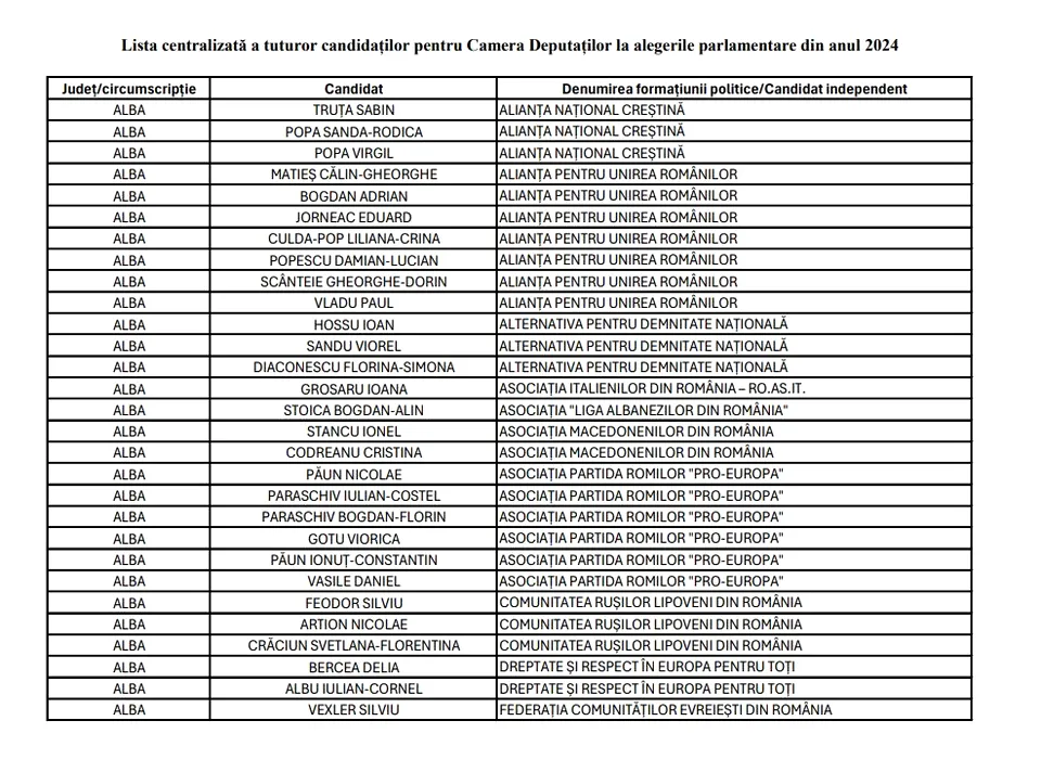 Lista candidaților din județul Alba pentru Camera Deputaților (1)
