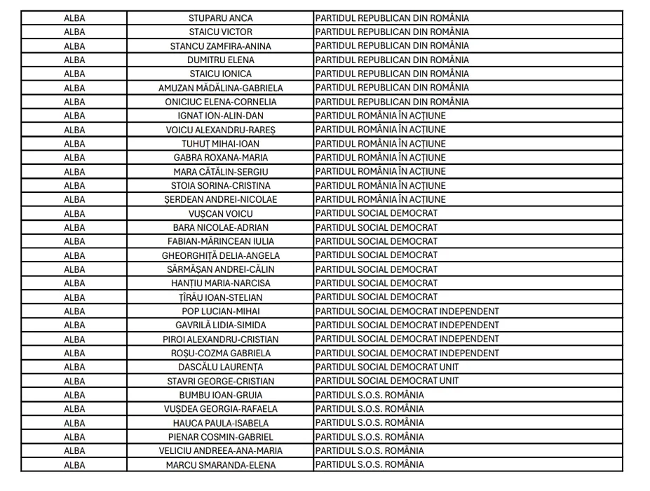 Lista candidaților din județul Alba pentru Camera Deputaților (3)
