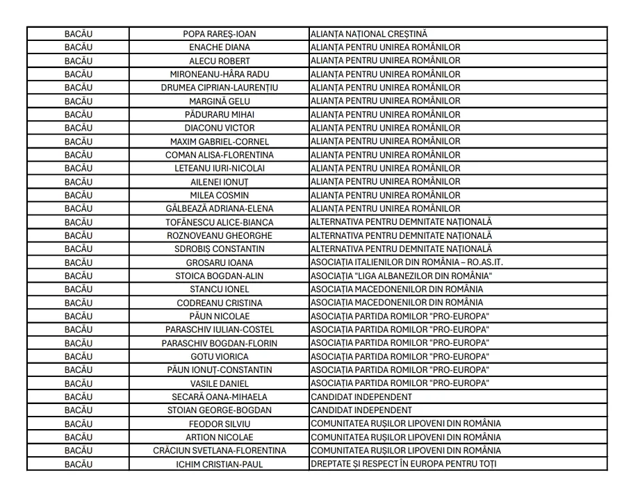 Lista candidaților din județul Bacău pentru Camera Deputaților (1)