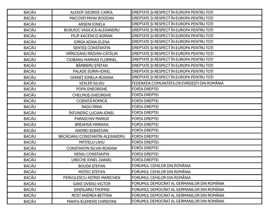 Lista candidaților din județul Bacău pentru Camera Deputaților (2)
