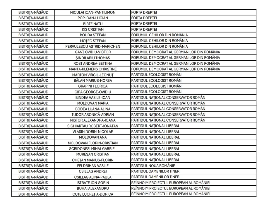 Lista candidaților din județul Bistrița-Năsăud pentru Camera Deputaților (2)