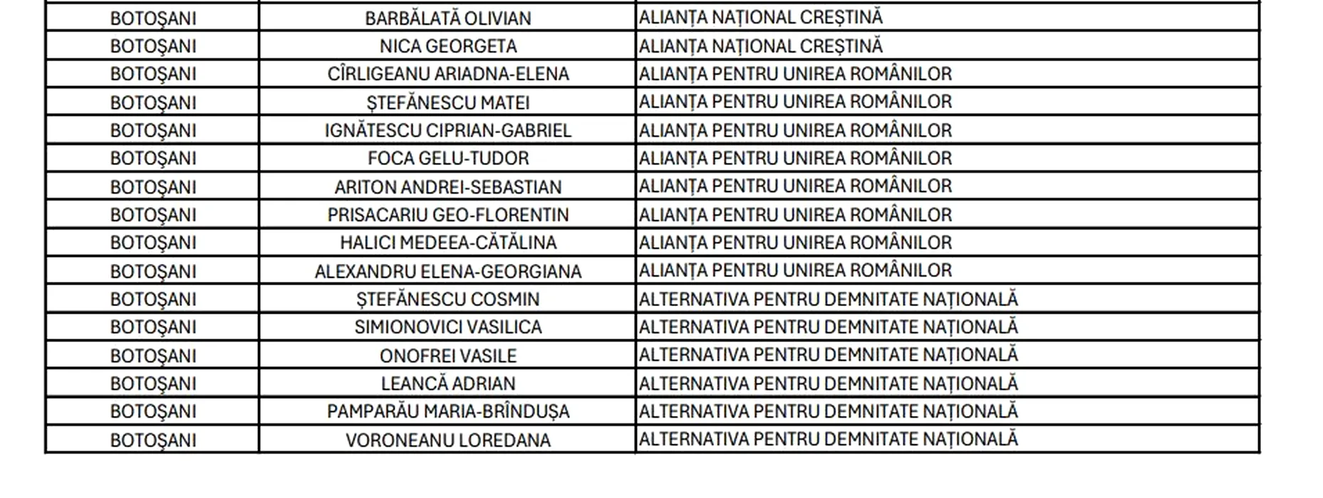 Lista candidaților din județul Botoșani pentru Camera Deputaților (1)