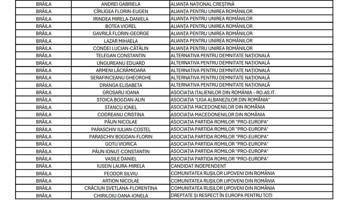 Lista candidaților din județul Brăila pentru Camera Deputaților (1)