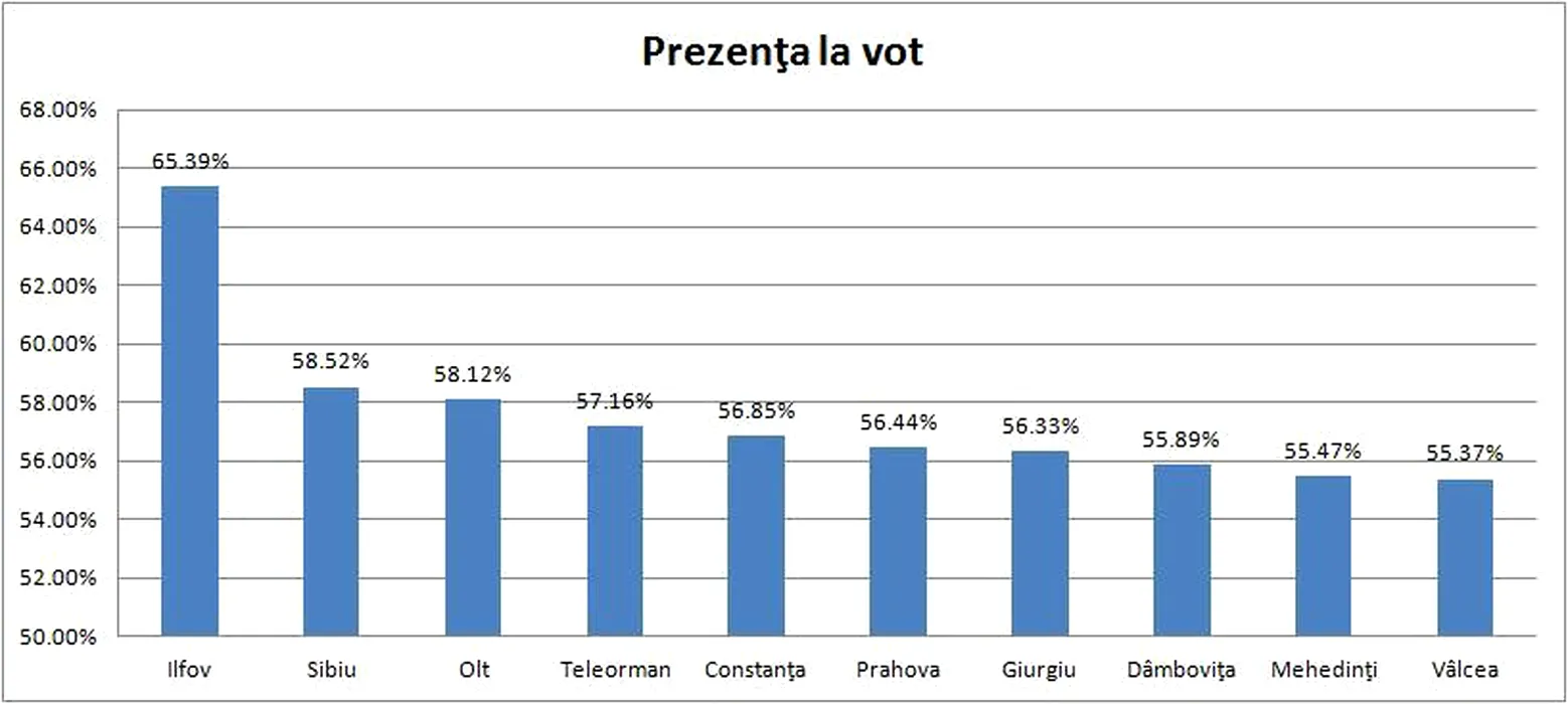 REZULTATE ALEGERI PREZIDENȚIALE 2014. TOP 10 județe cu cea mai mare prezență la vot