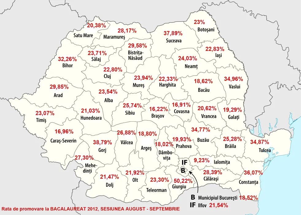 REZULTATE BAC 2012 SESIUNEA AUGUST. EXCLUSIV: Ministrul Educației comentează HARTA PROMOVĂRII PE JUDEȚE