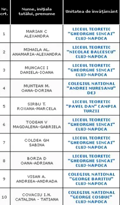 REZULTATE BACALAUREAT 2012 EDU.RO CLUJ. Top 10 note pe județ