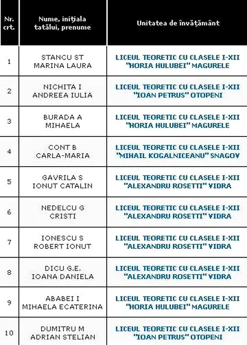 REZULTATE BACALAUREAT 2012 EDU.RO ILFOV. Top 10 note pe județ