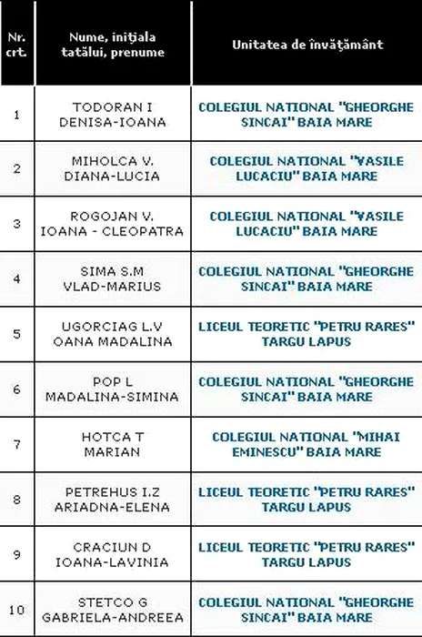 REZULTATE BACALAUREAT 2012 EDU.RO MARAMUREȘ. Top 10 note pe județ