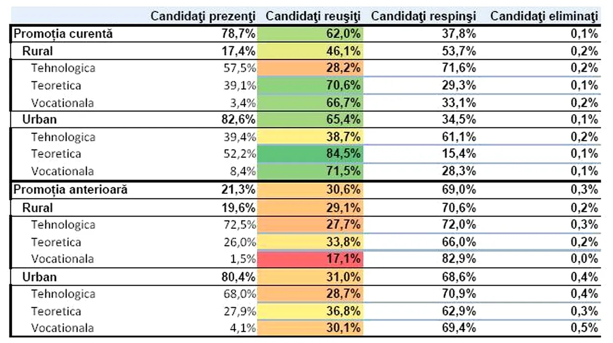 REZULTATE BACALAUREAT 2013. Peste 56% rată de promovare la oraș, doar 31% în mediul rural