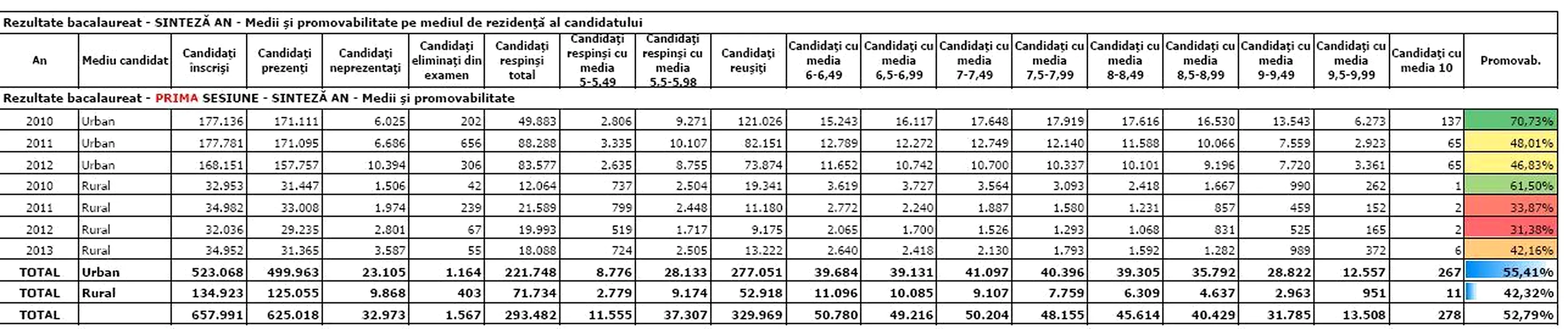 REZULTATE BACALAUREAT 2013. Peste 56% rată de promovare la oraș, doar 31% în mediul rural