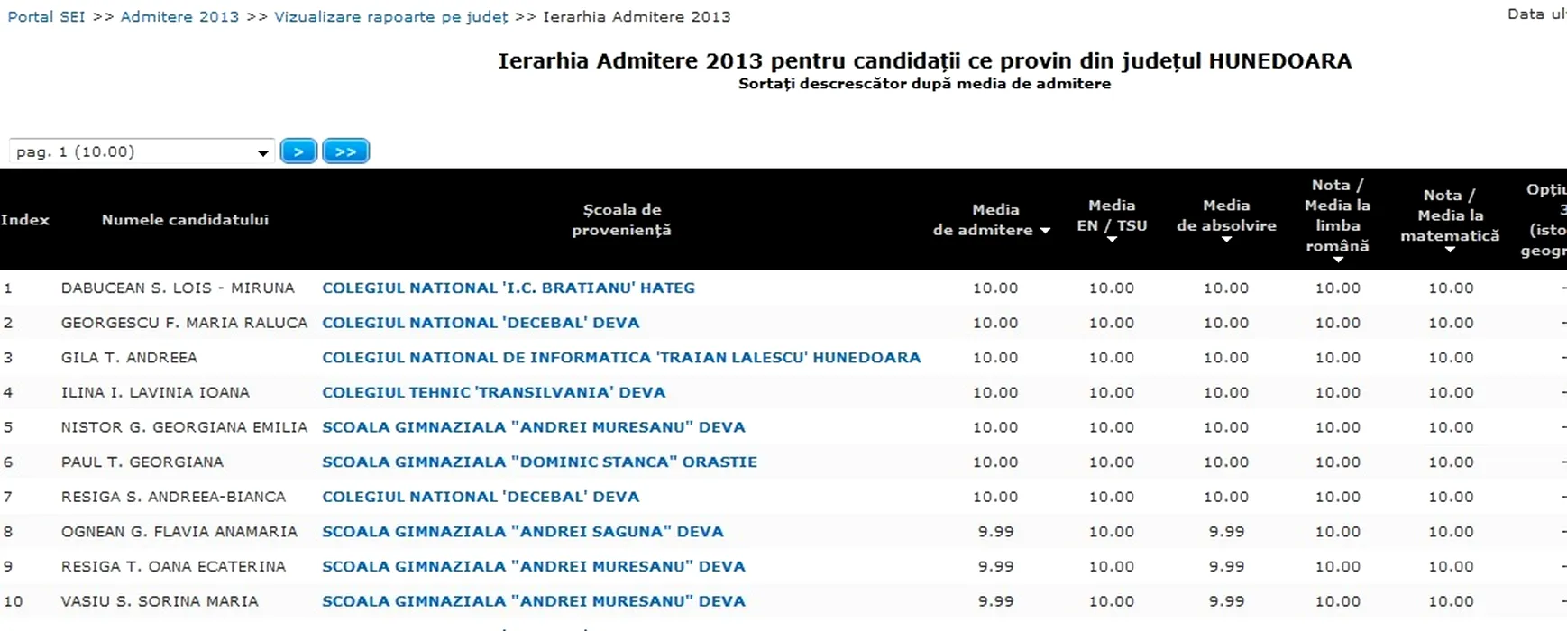 REZULTATE EVALUARE NAȚIONALĂ 2013 pe EDU.RO – ADMITERE LICEU 2013. Harta județelor cu cele mai multe medii de 10