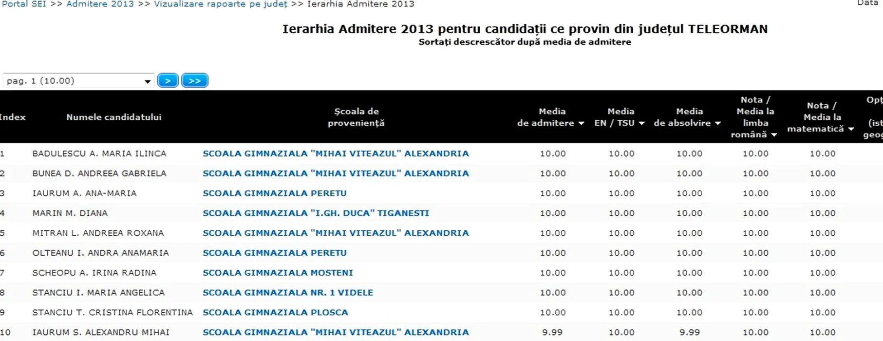REZULTATE EVALUARE NAȚIONALĂ 2013 pe EDU.RO – ADMITERE LICEU 2013. Harta județelor cu cele mai multe medii de 10