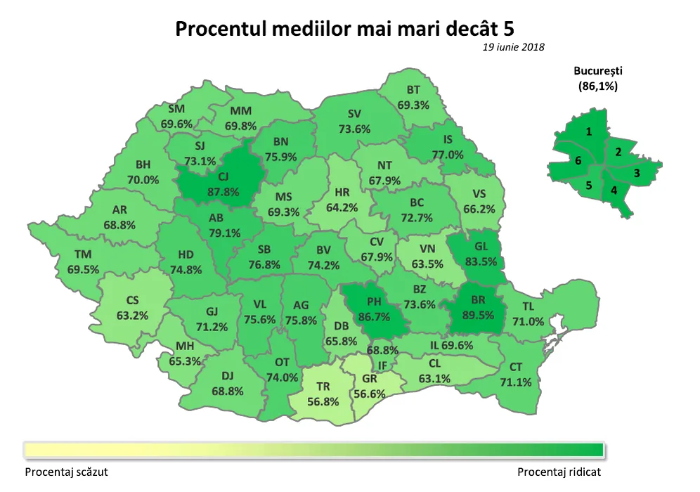 Rezultate Evaluarea Națională 2018: harta județelor cu cele mai multe medii peste 5