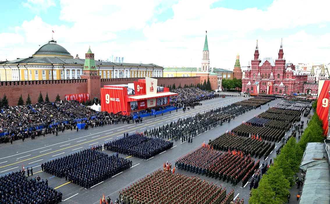 09 May 2025, Russia, Moscow: Russian servicemen march on Red Square during the Victory Day military parade in Moscow. Russia celebrates the 80th anniversary of the victory over Nazi Germany in World War II. Photo: -/Kremlin/dpa - ATTENTION: editorial use only and only if the credit mentioned above is referenced in full