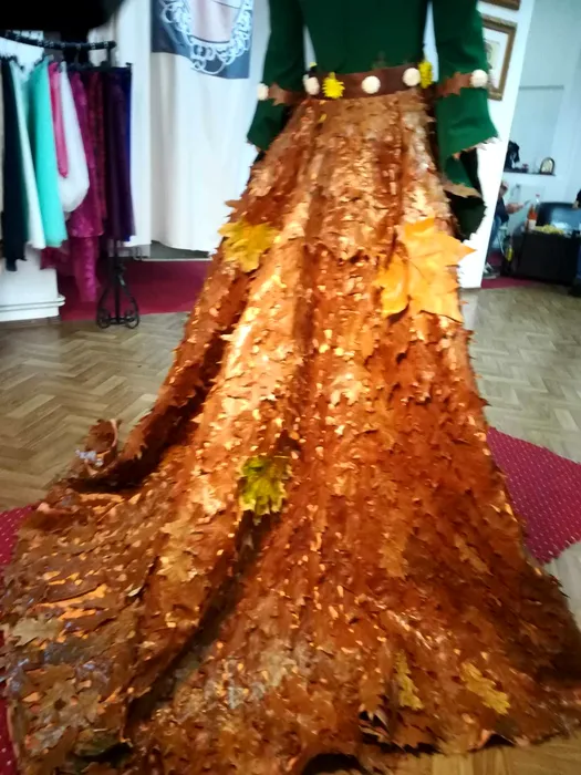 Rochie DIN FRUNZE DE STEJAR, creată de o brăileancă. Poate fi purtată O JUMĂTATE DE AN și costă peste 5.000 de euro