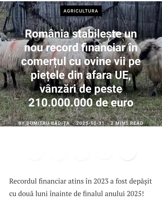 România a câştigat 210 milioane de euro doar din exportul oilor, în 2025. Florin Barbu: „Așezăm România unde îi este locul în Uniunea Europeană”