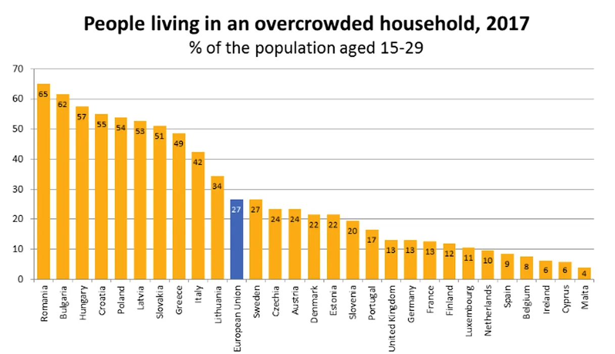 ROMÂNIA, fruntașă în TOPUL RUȘINII. Peste 6 din 10 tineri trăiesc în CASE SUPRAAGLOMERATE